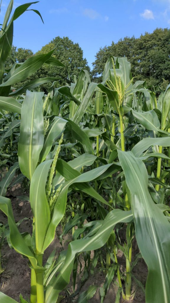 Nicht verpassen, bald gibt es Zuckermais bei uns – aber nur für kurze Zeit, Ende September ist schon wieder Schluss! Sieht aus wie echter Mais, ist aber viel süßer und super lecker. Und auch der Kürbis wächst schon kräftig und ist bald reif für die Ernte 🙂