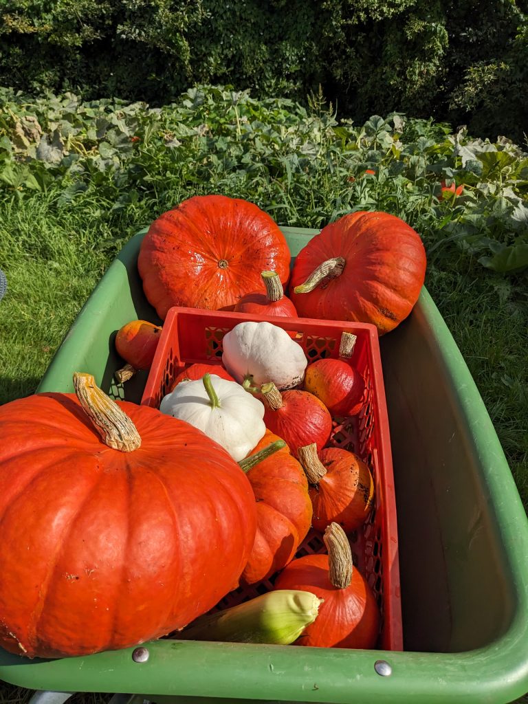 Nun ist auch der Kürbis reif. Vor allem gibt es Hokkiado und Gartenkürbis.
