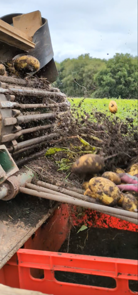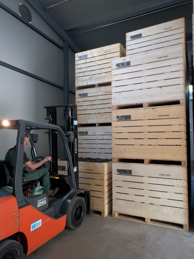 Die Kartoffeln sind geerntet und in der neuen Halle eingelagert. Los geht’s, alle Sorten stehen ab jetzt im Hofladen! Es fehlen noch die Sondersorten, die sind erst später reif – auf die bunten Knollen und die Hörnchen müssen wir noch etwas warten. Aber Kürbis und neue Äpfel aus Friesoythe sind schon da 🙂